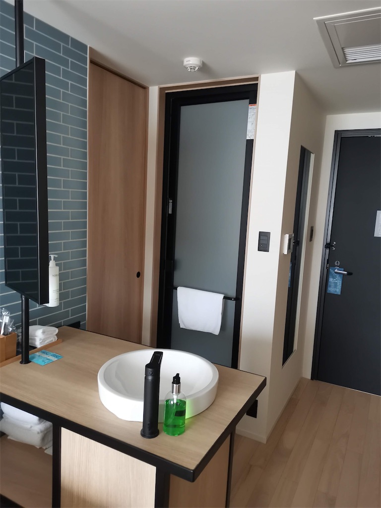 部屋はベッド・洗面・トイレ・シャワールーム(バスタブはありません)のシンプルな作りですが、設備はマリオット仕様で高級感を味あうことができます。